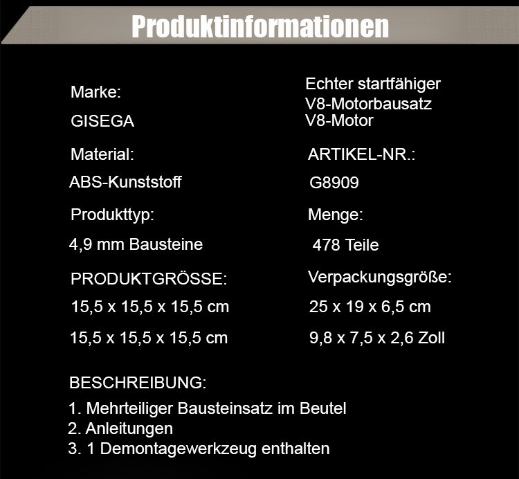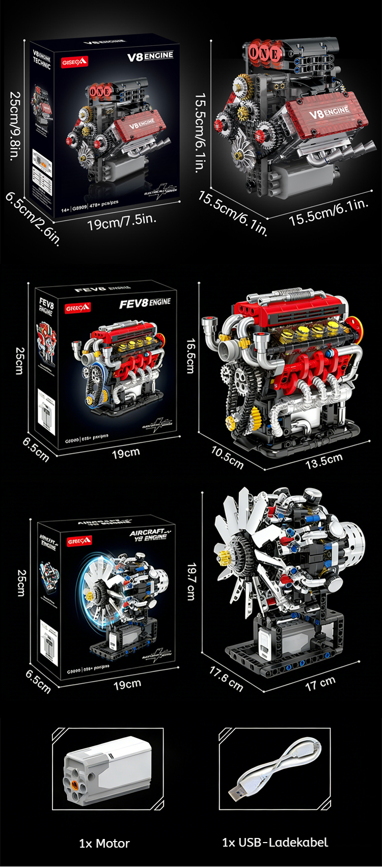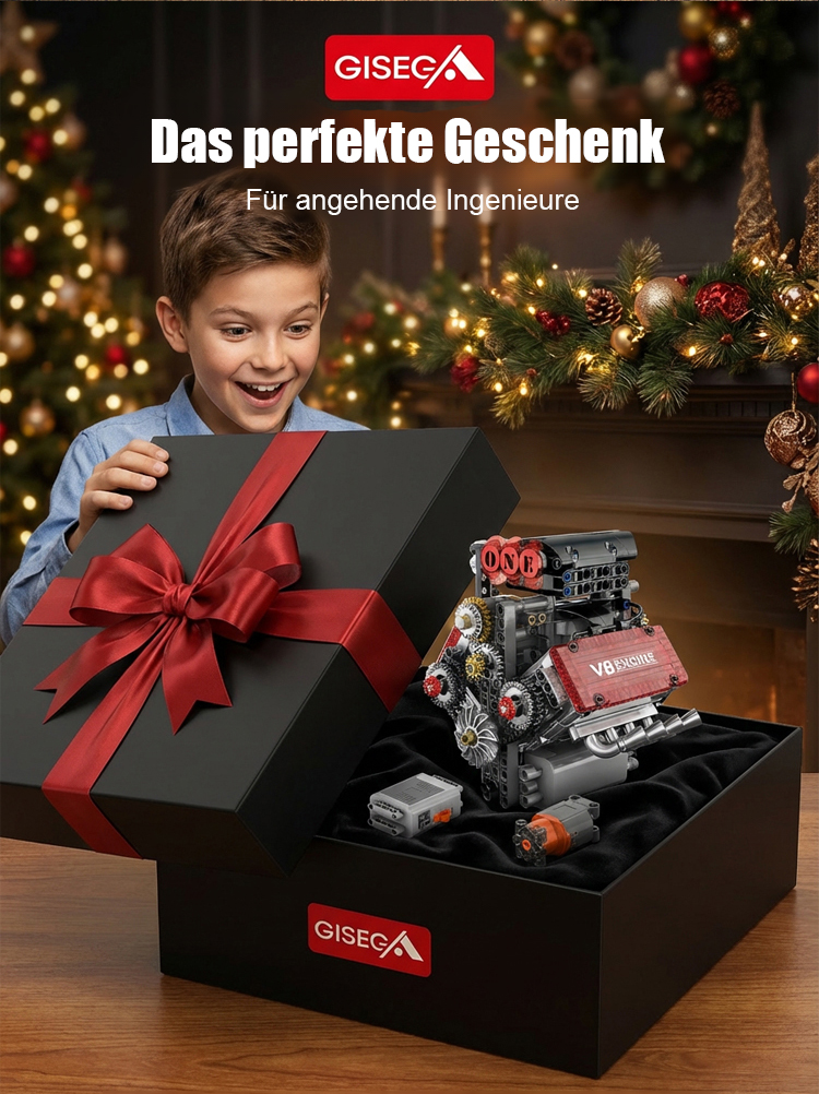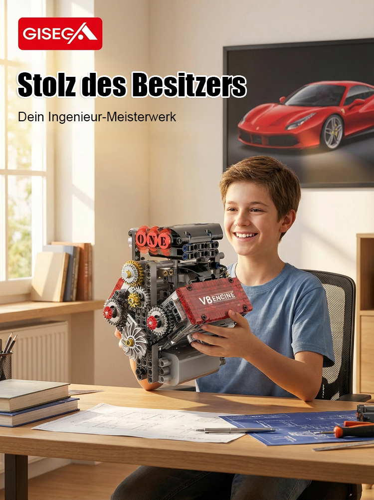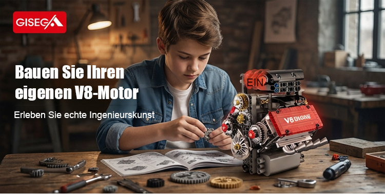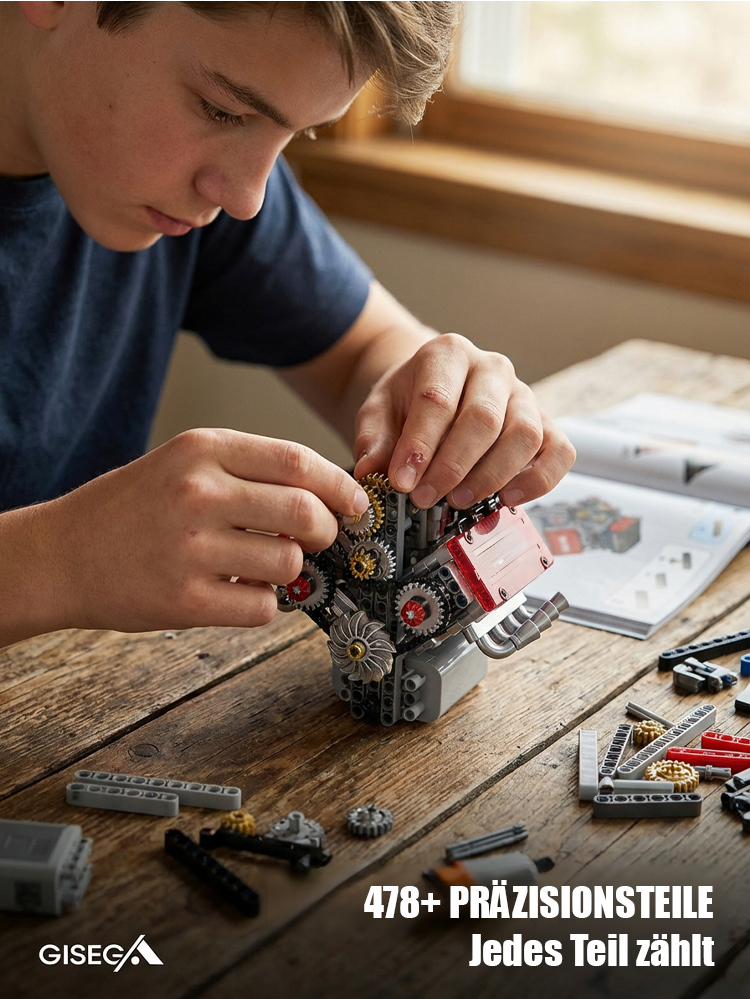 🏎️ GISECA Technik V8 Motor Bausatz | Realistisches Funktionsmodell mit E-Motor | MINT Lernspielzeug | 478 Teile | Metalloptik 🛠️