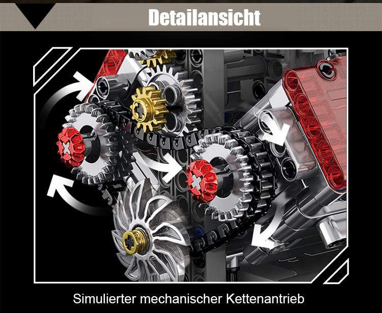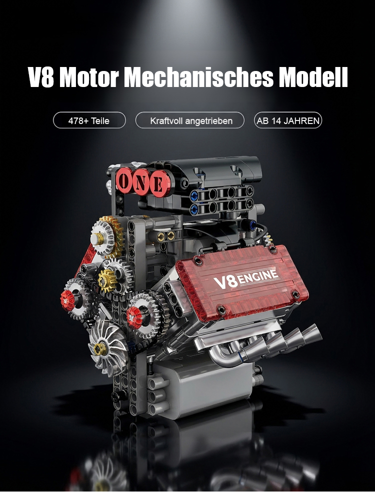 Tauchen Sie ein in die Welt der Mechanik. Dieser V8-Motorbausatz mit 478 Teilenbildet die Dynamik eines echten Motors im Maßstab 1:1 nach. Transparente Zylinderköpfe erlauben einen faszinierenden Einblick: Sehen Sie zu, wie die Kolben arbeiten, angetrieben vom leistungsstarken L-Motor. Ein optisches Highlight mit hochwertiger Metallbeschichtung – perfekt für Ihr Regal oder den Schreibtisch.