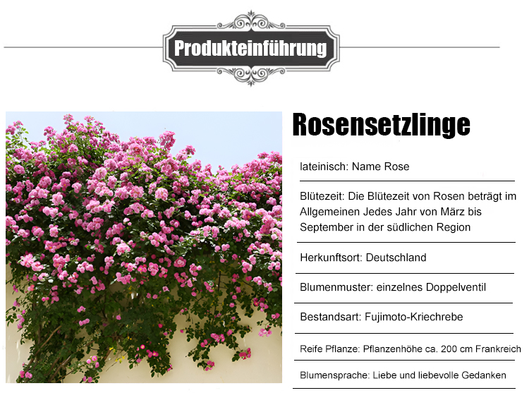 ⚠️ Achtung: Aufgrund der hohen Nachfrage in dieserSaison ist der Lagerbestand knapp.Nur noch 150 Stück verfügbar! Bestellen Sie jetzt, bevor sie ausverkauft sind. Unsere Premium Kletterrosen-Samen sind die Lösung für jeden deutschen Garten. Egal ob schattiger Hinterhof, sonniger Balkon oder kahle Wände – diese "Überlebenskünstler" gedeihen überall!